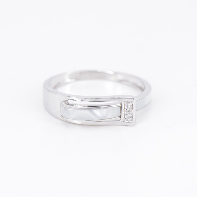 DÉFERLANTE Bague Clozeau Déferlante en or blanc 18 carats, résine blanche et diamants