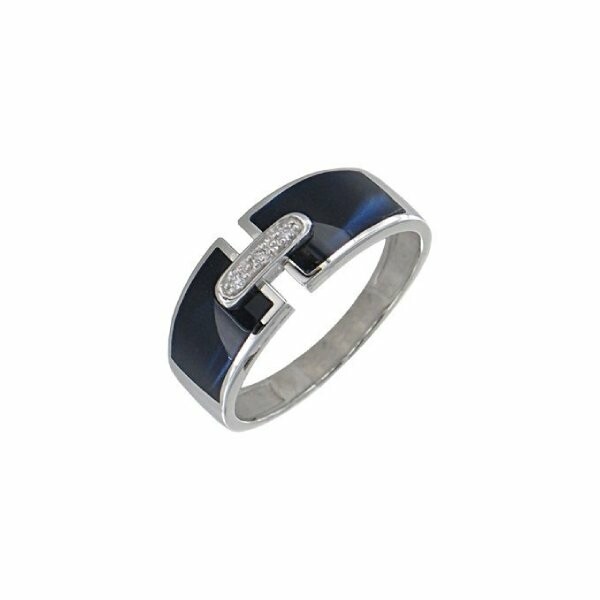 HÉLÈNA Bague Clozeau HÉLÈNA en or blanc, résine bleu prusse et diamants