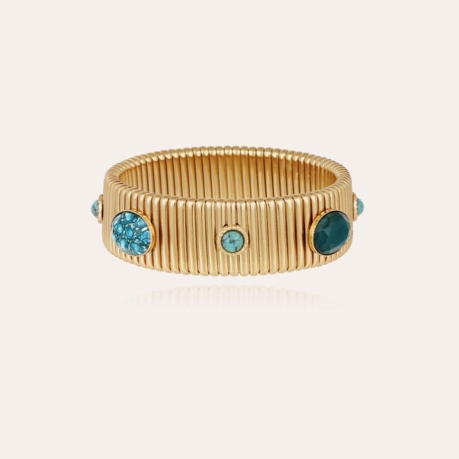 GeoCUBE Bracelet Cœur de Lion GeoCUBE en métal doré, œil de tigre, cristaux, polaris, verre et strass