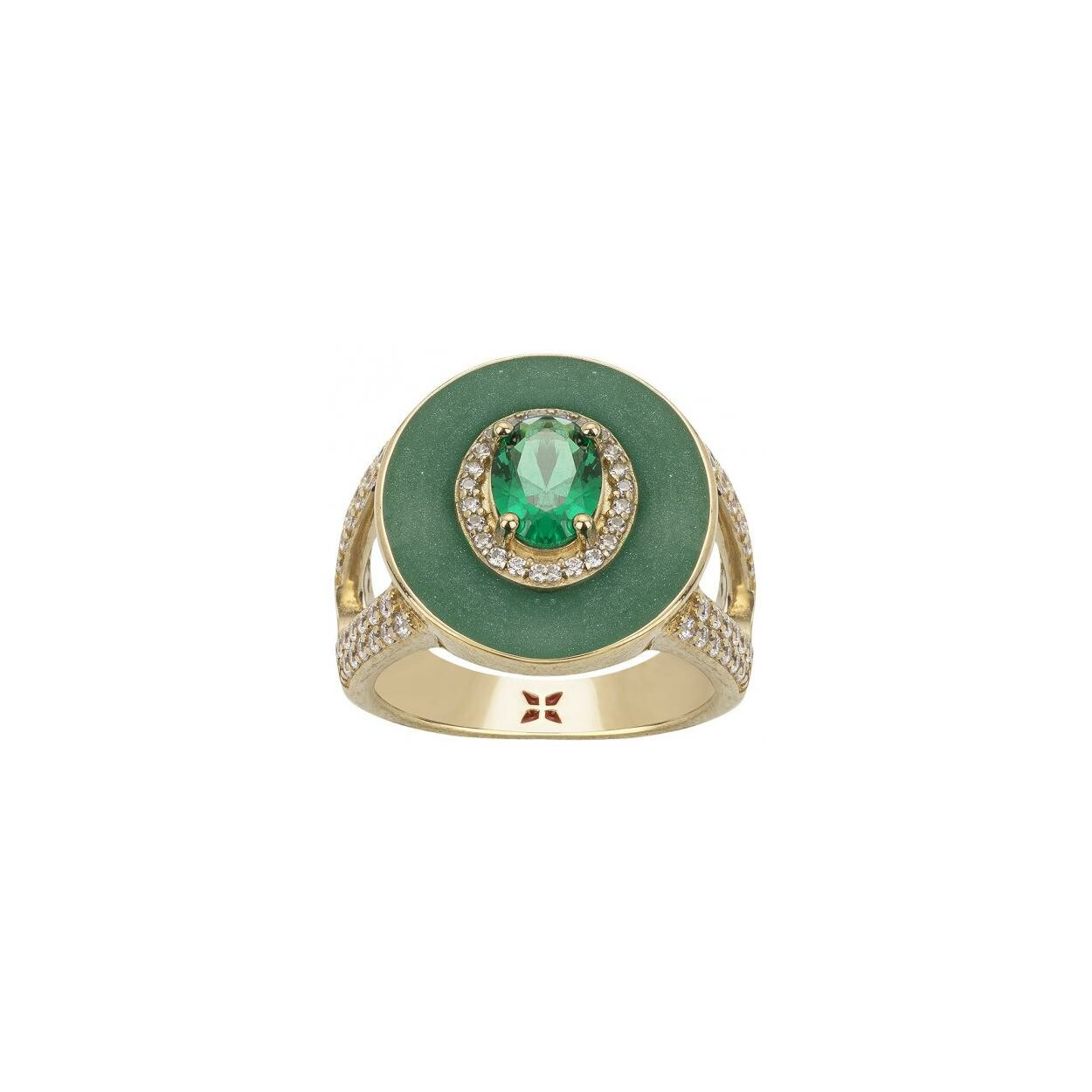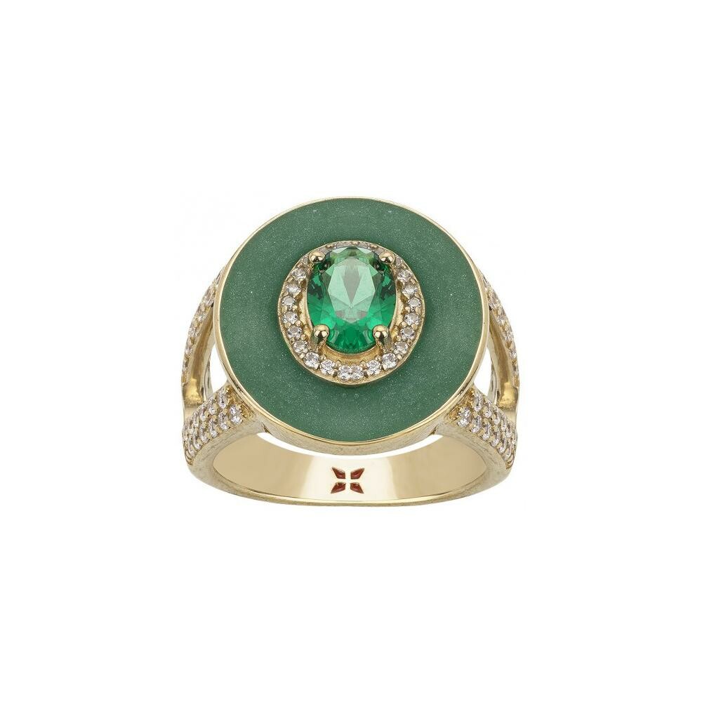 Bague Griffe Rouge en plaqué or, laque verte et oxydes de zirconium