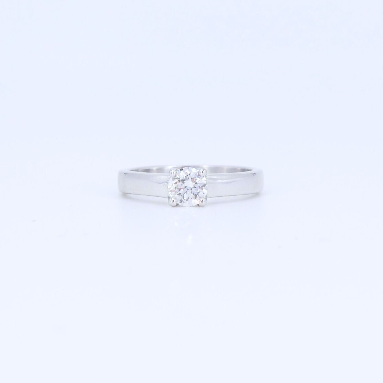 Ce solitaire, avec son diamant de 50 centièmes de carat, magnifiquement serti par quatre griffes, est livré avec son certificat d’authenticité GIA.