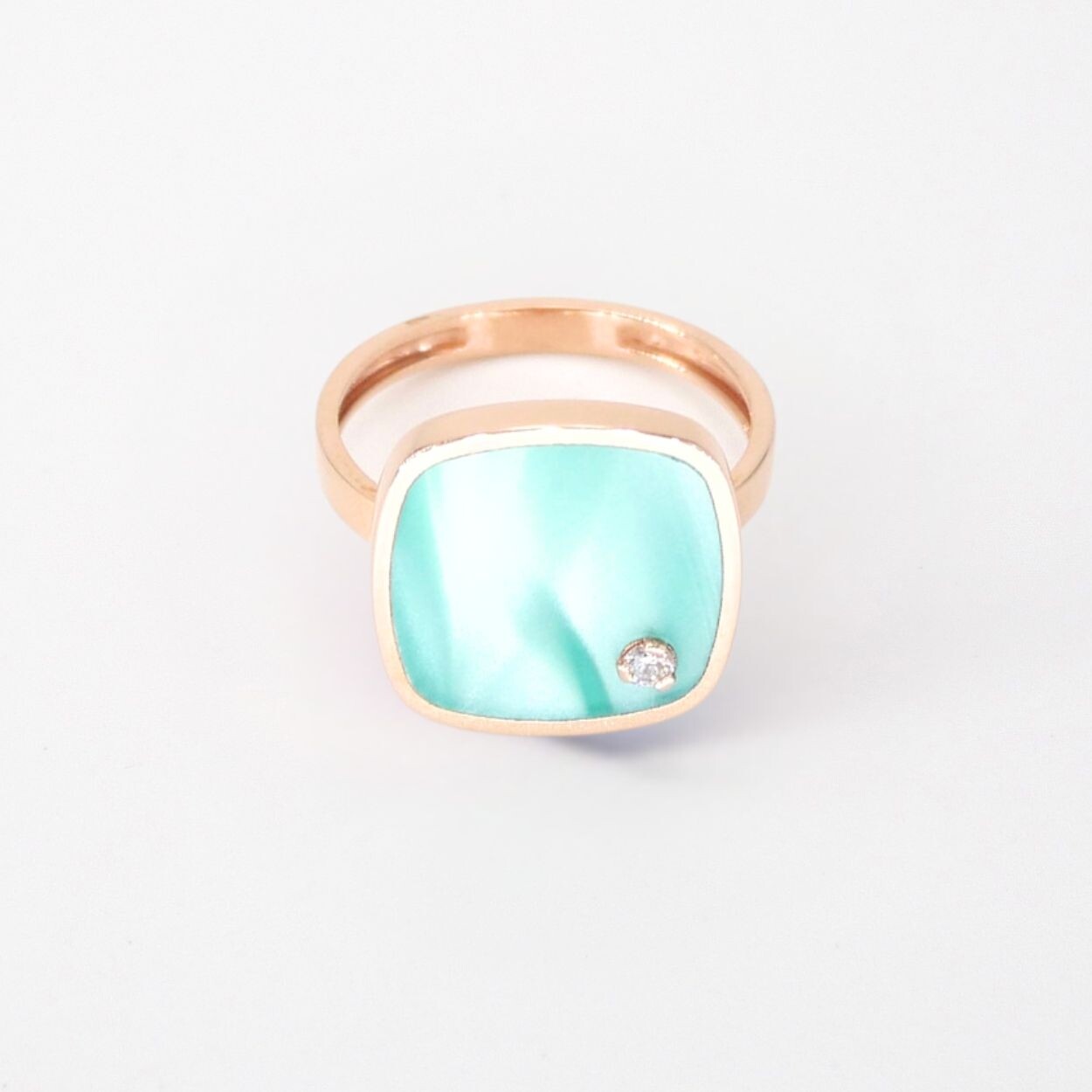 Bague Clozeau en or rose, diamant et résine turquoise lagon