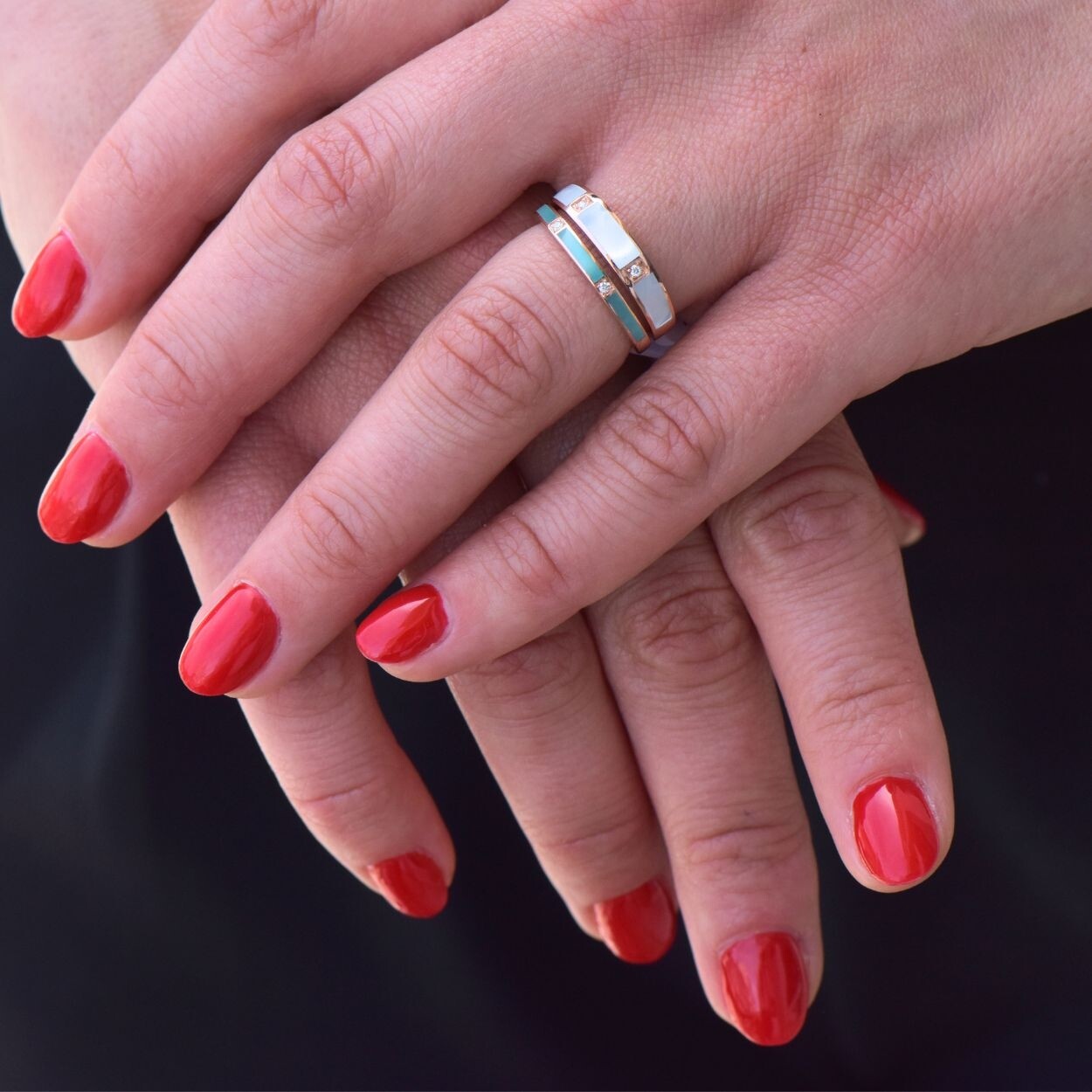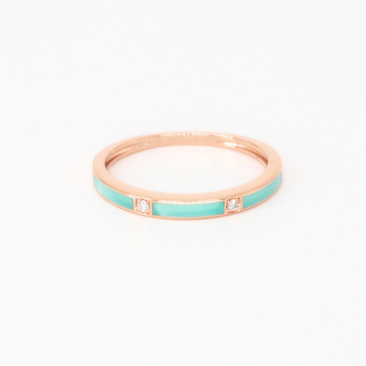 Bague Clozeau en or rose, résine turquoise lagon et diamants