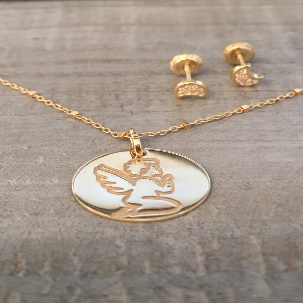 Évoquant une profonde tendresse, cette médaille Ange en or jaune 18 carats symbolise la douceur et l’amour, en faisant un trésor inestimable à chérir et à transmettre.