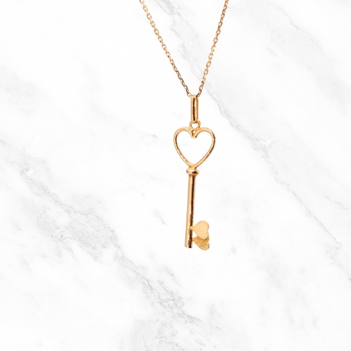 Découvrez notre pendentif très spécial en forme de clé, avec sa tête délicate en forme de cœur !