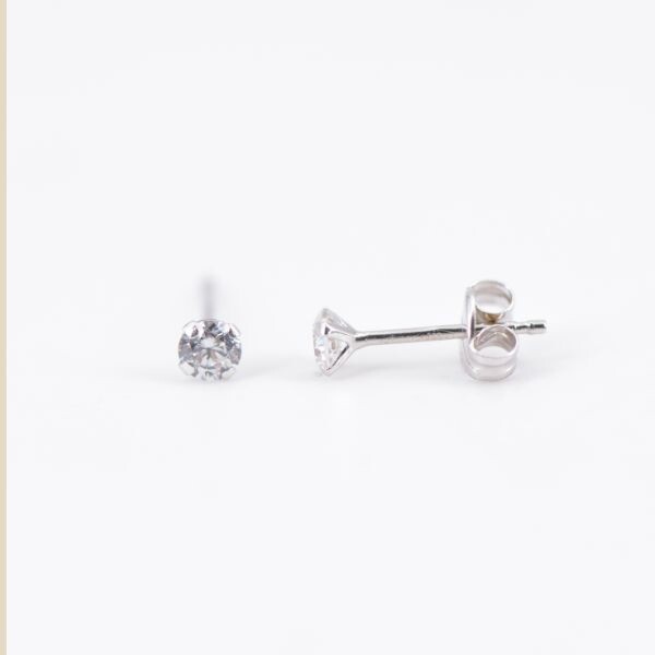 Boucles d'oreilles Collection Lumière or blanc 750 millièmes et oxydes de zirconium 3 mm.