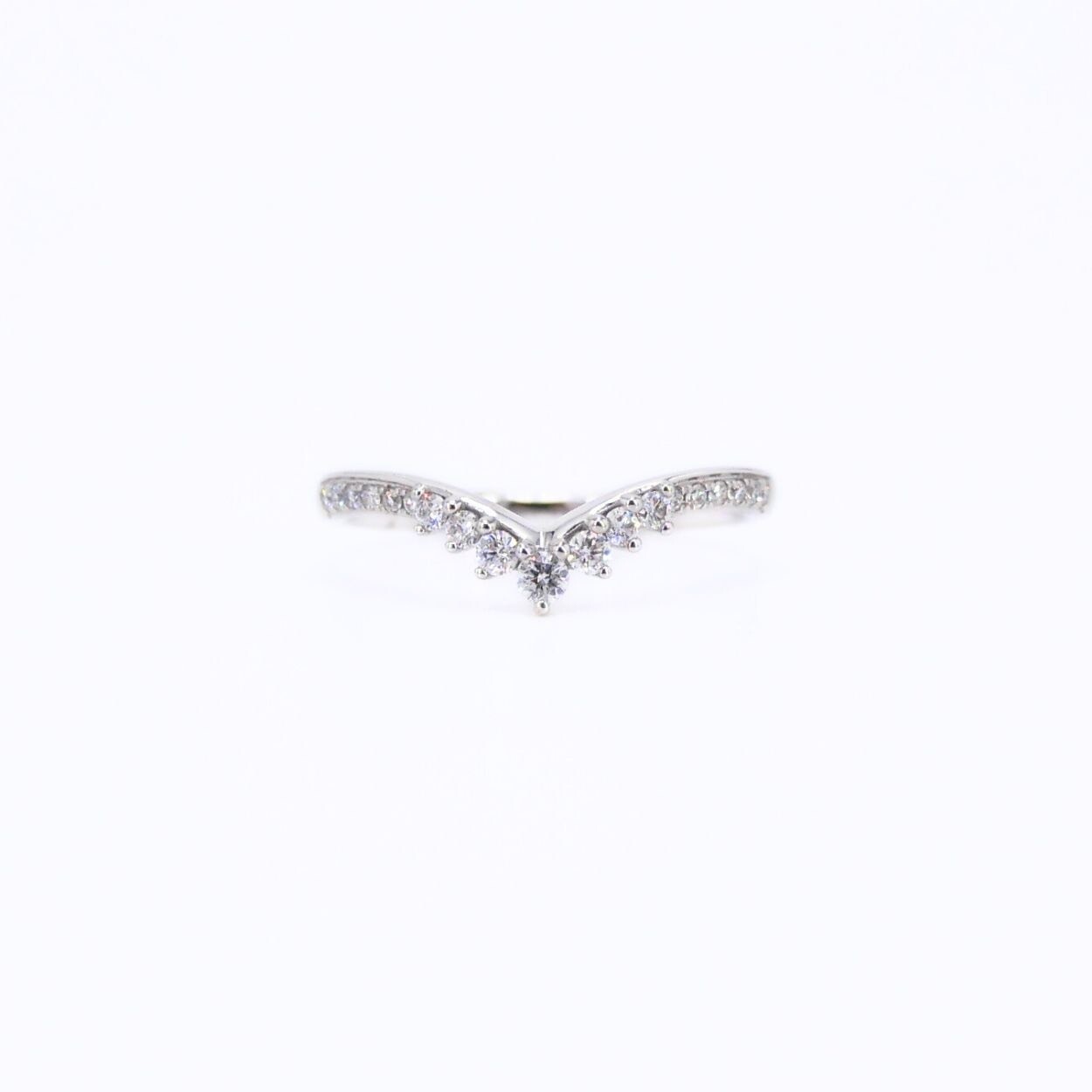 Découvrez l’élégance intemporelle de cette bague princesse en forme de couronne, ornée de diamants étincelants en or blanc 18 carats.
