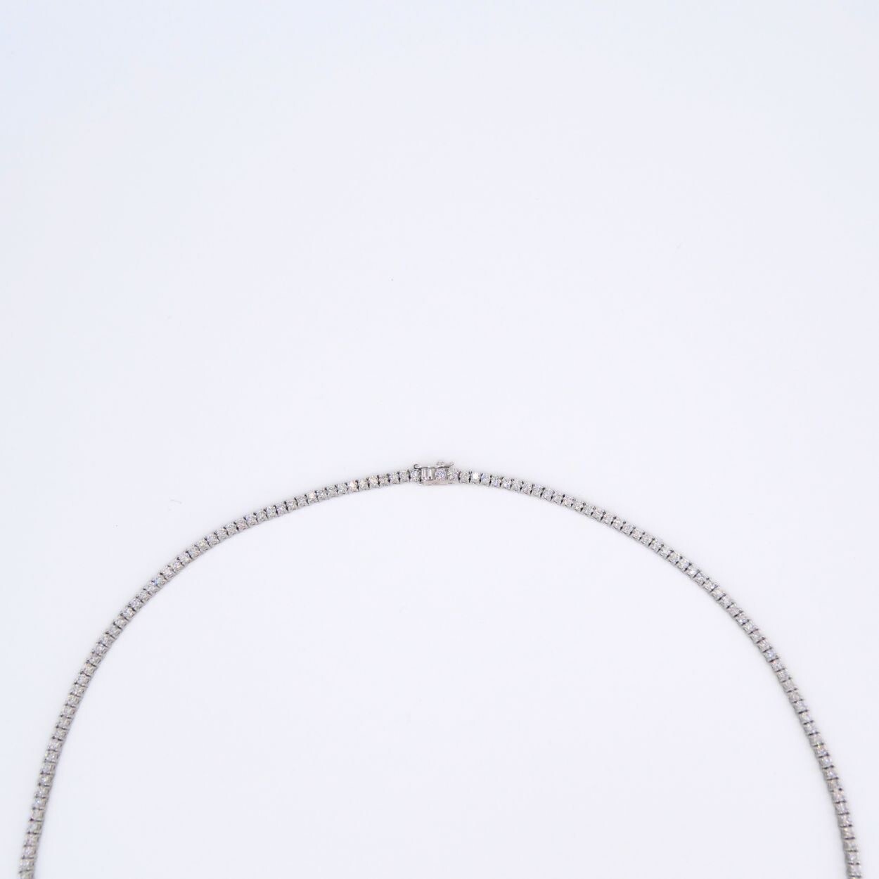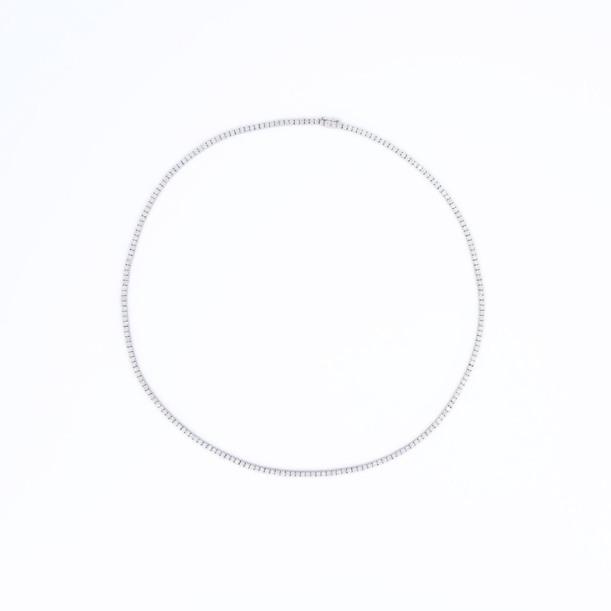 Déployant un flux pur et ininterrompu de diamants taille brillant, il épouse avec grâce la courbe du cou, telle une cascade de lumière d’une fluidité parfaite.