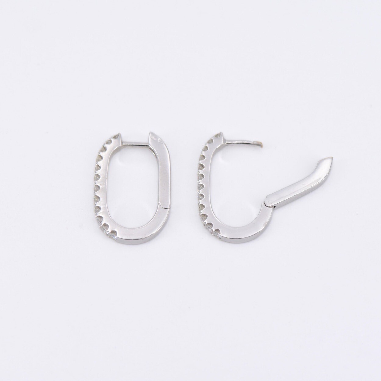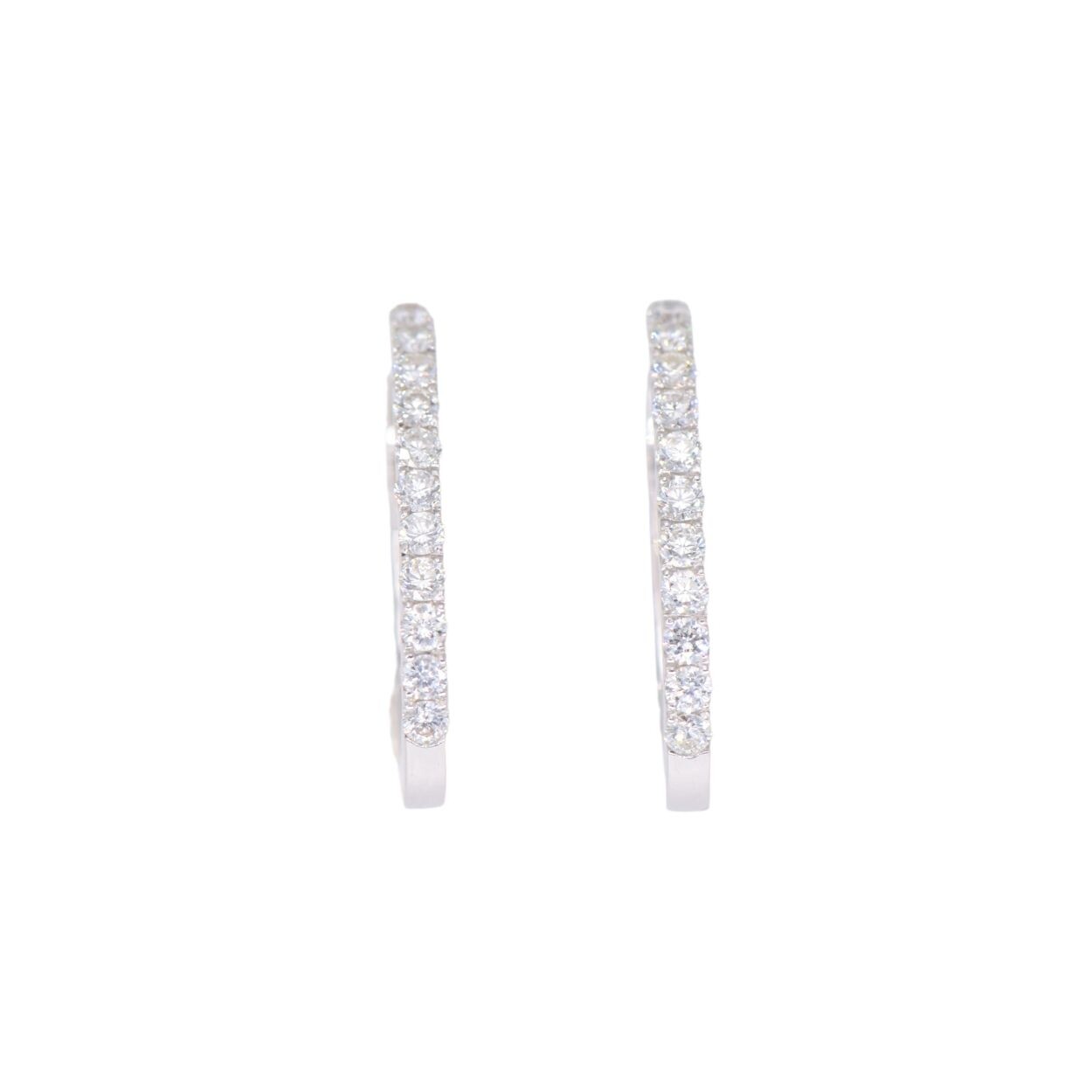 Craquez pour nos créoles en or blanc 18 carats, au design rectangulaire moderne, entièrement serties de diamants scintillants qui leur donnent un éclat et un feu exceptionnels.