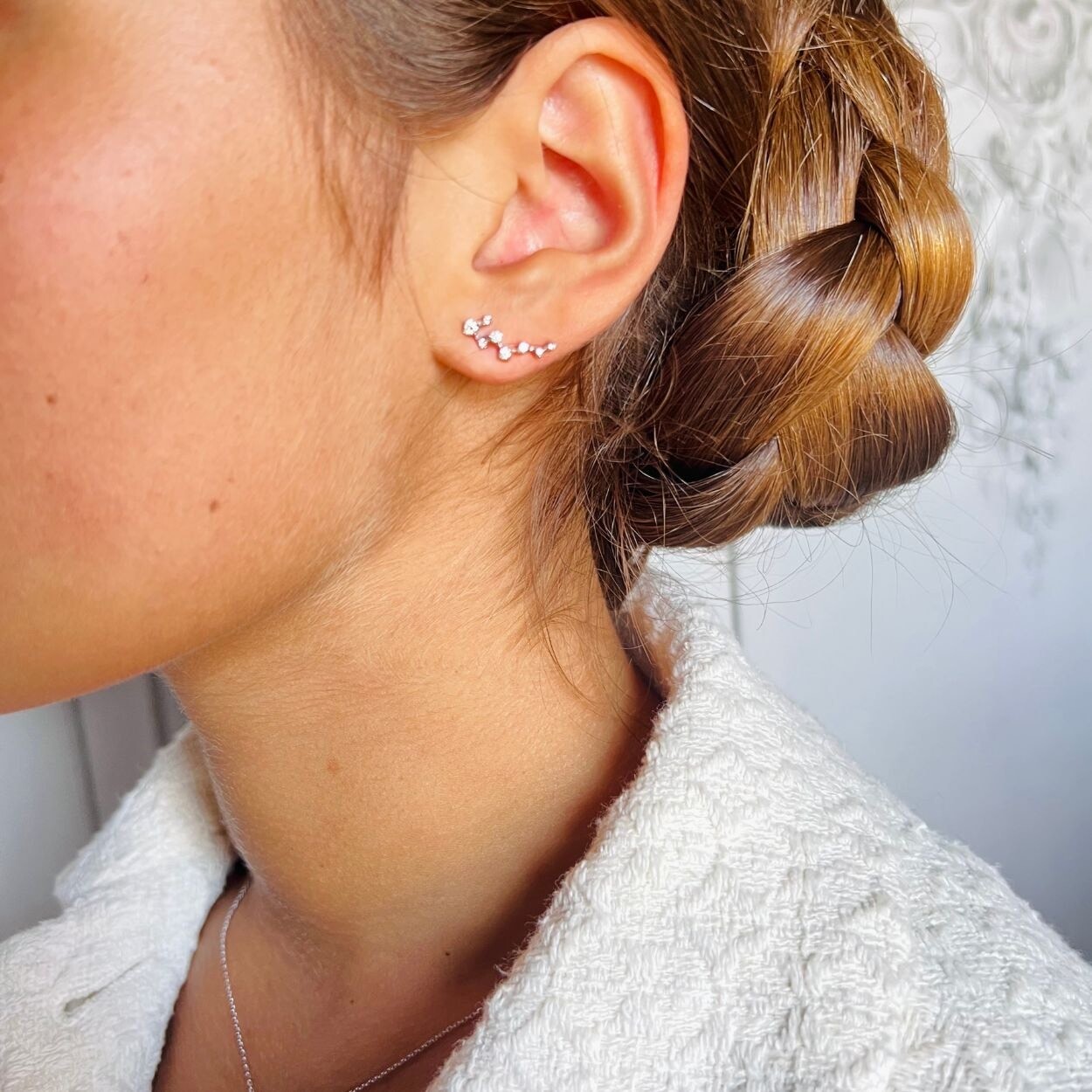 Craquez pour nos boucles d’oreilles en or blanc 18 carats, dont la position des diamants évoque une étoile filante et scintillante !!