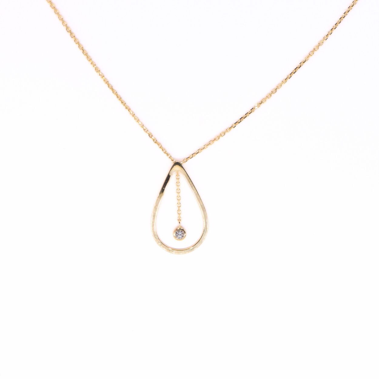 Réalisé en or jaune, son pendentif en forme de goutte fait vibrer un diamant scintillant.