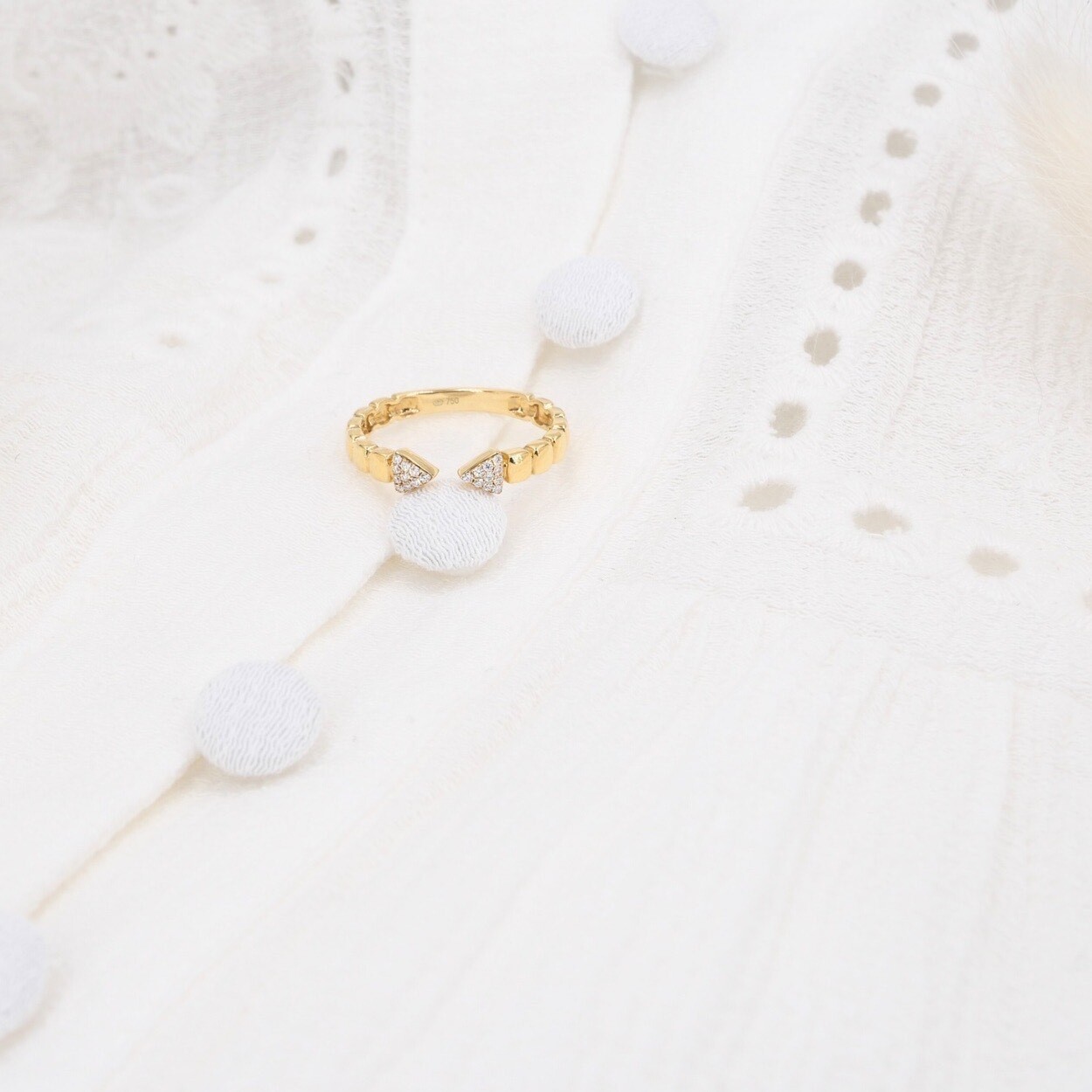 En or jaune 18 carats et orné de diamants, ce bijou moderne par sa forme offre une allure délicate et féminine.