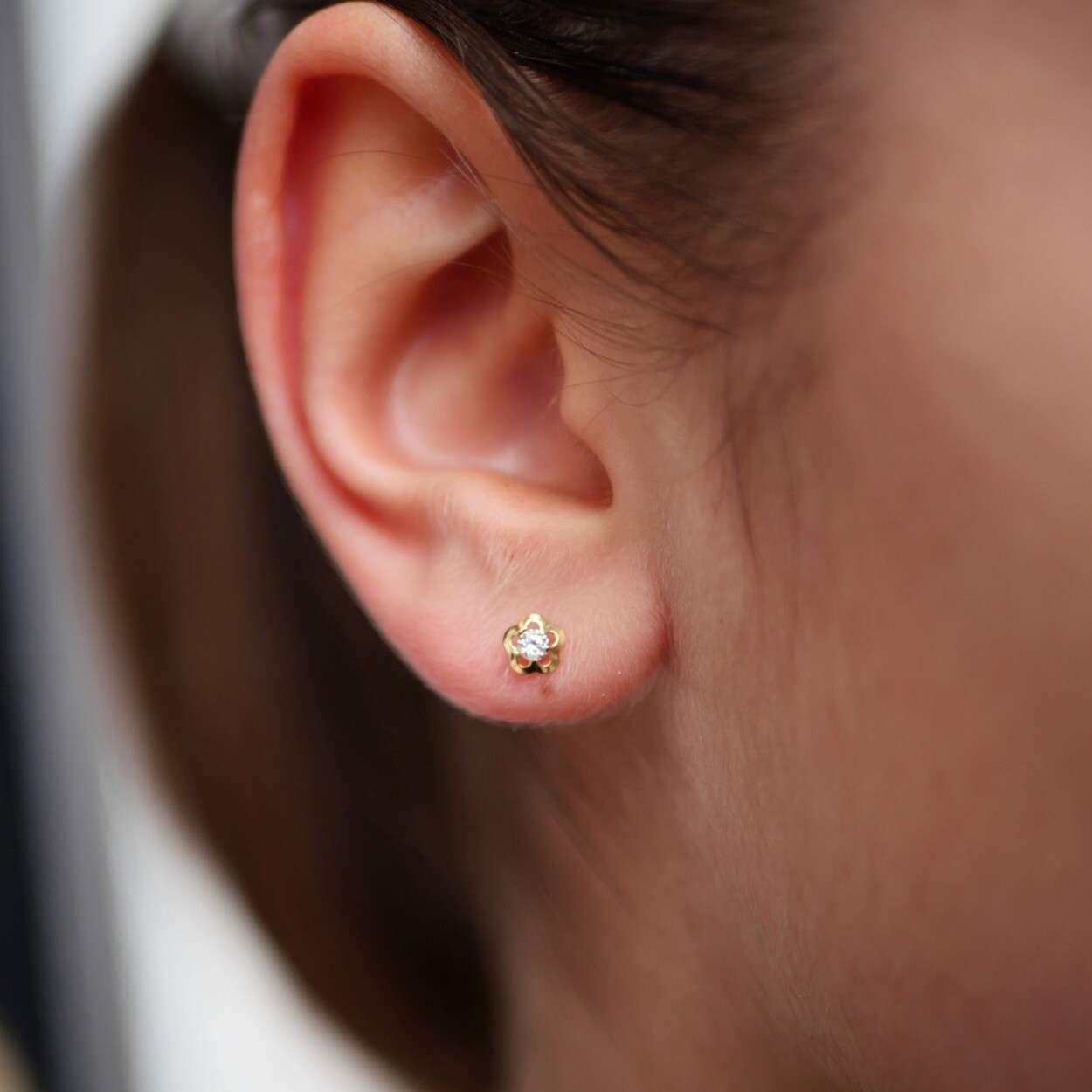 Ces boucles d’oreilles en or 18 carats sont spécialement conçues pour les enfants.