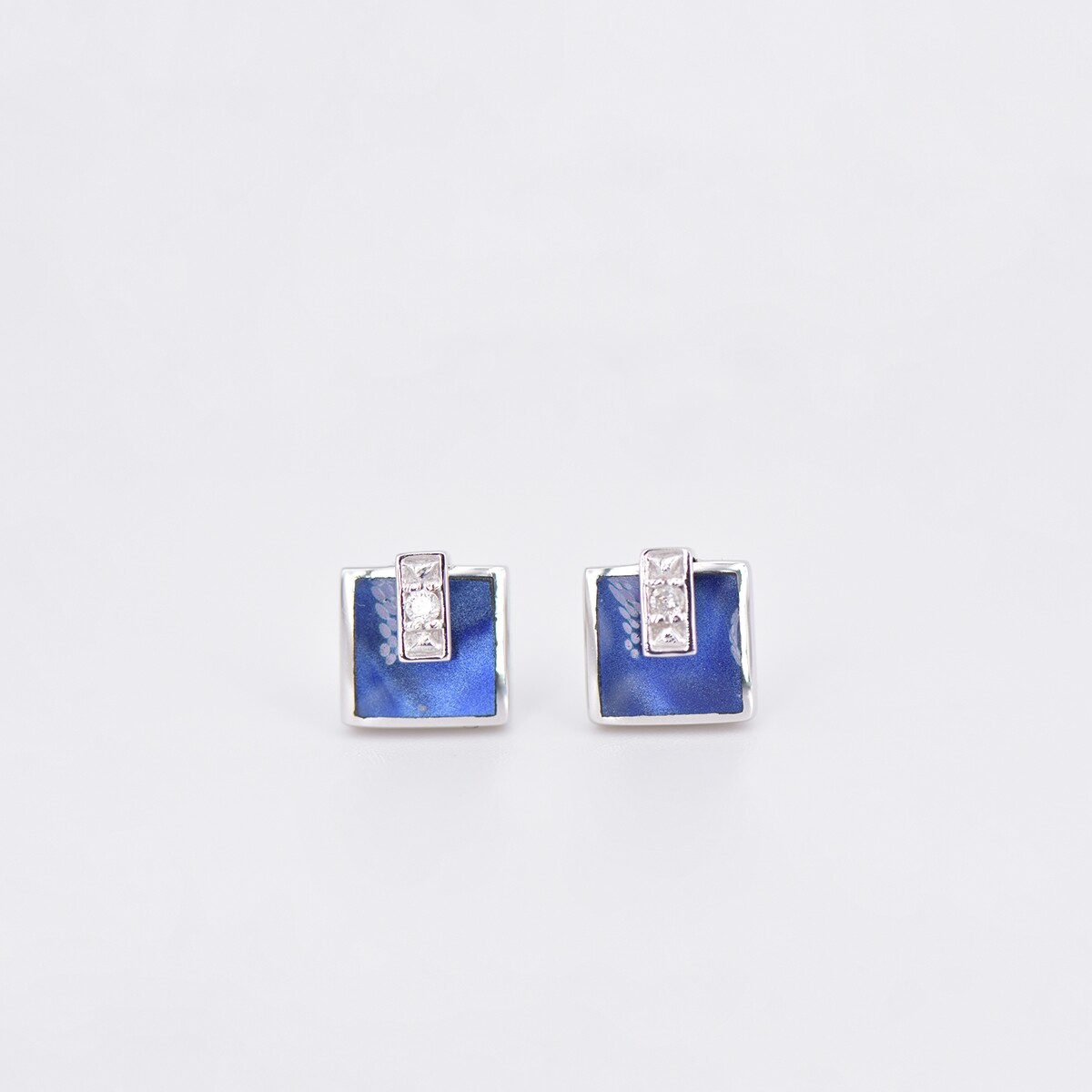 Boucles d'oreilles Clozeau en or blanc, résine bleu prusse et diamants
