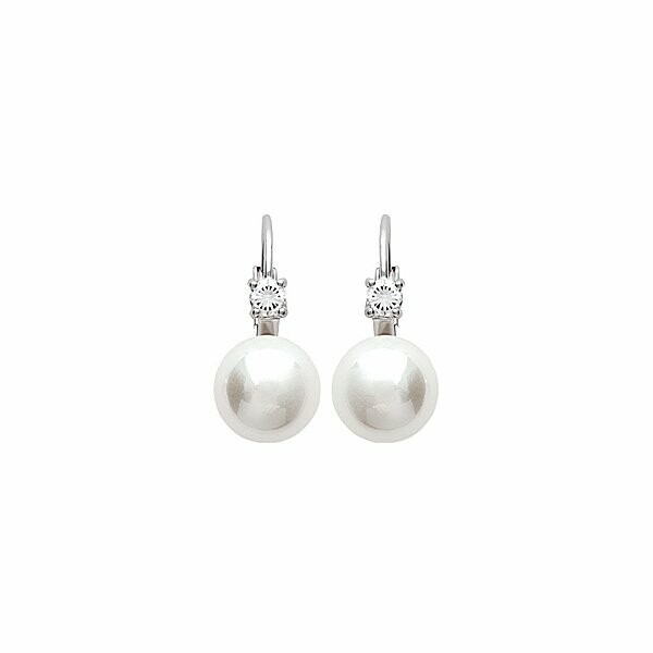 Boucles d'oreilles en argent rhodié, oxydes de zirconium et perle d'imitation