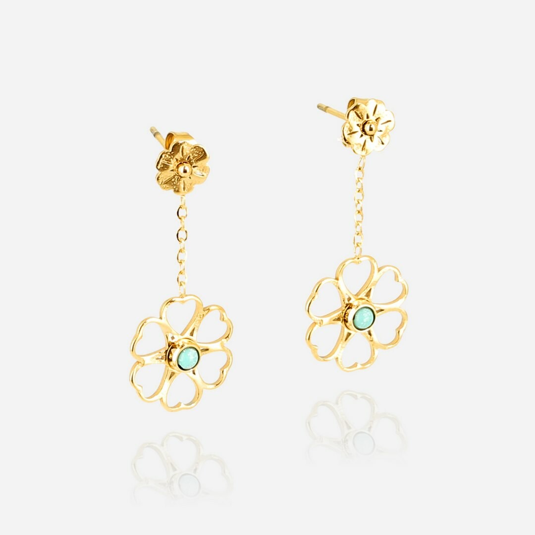 Boucles d'oreilles ZAG en acier doré et turquoise