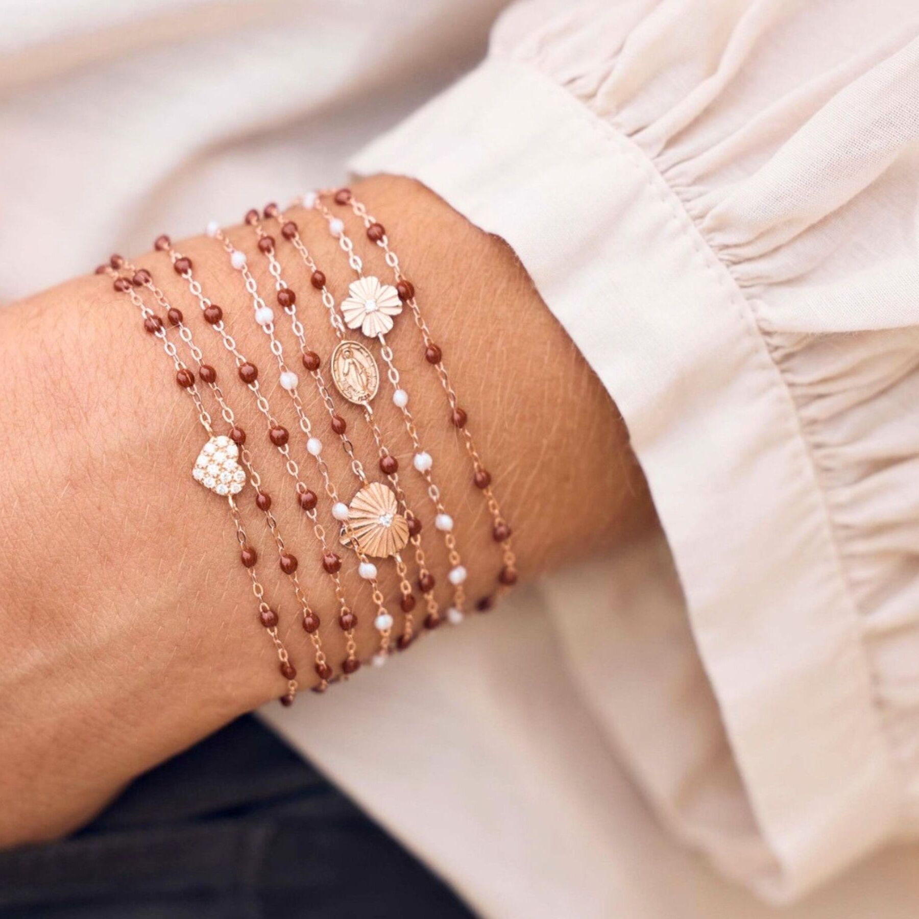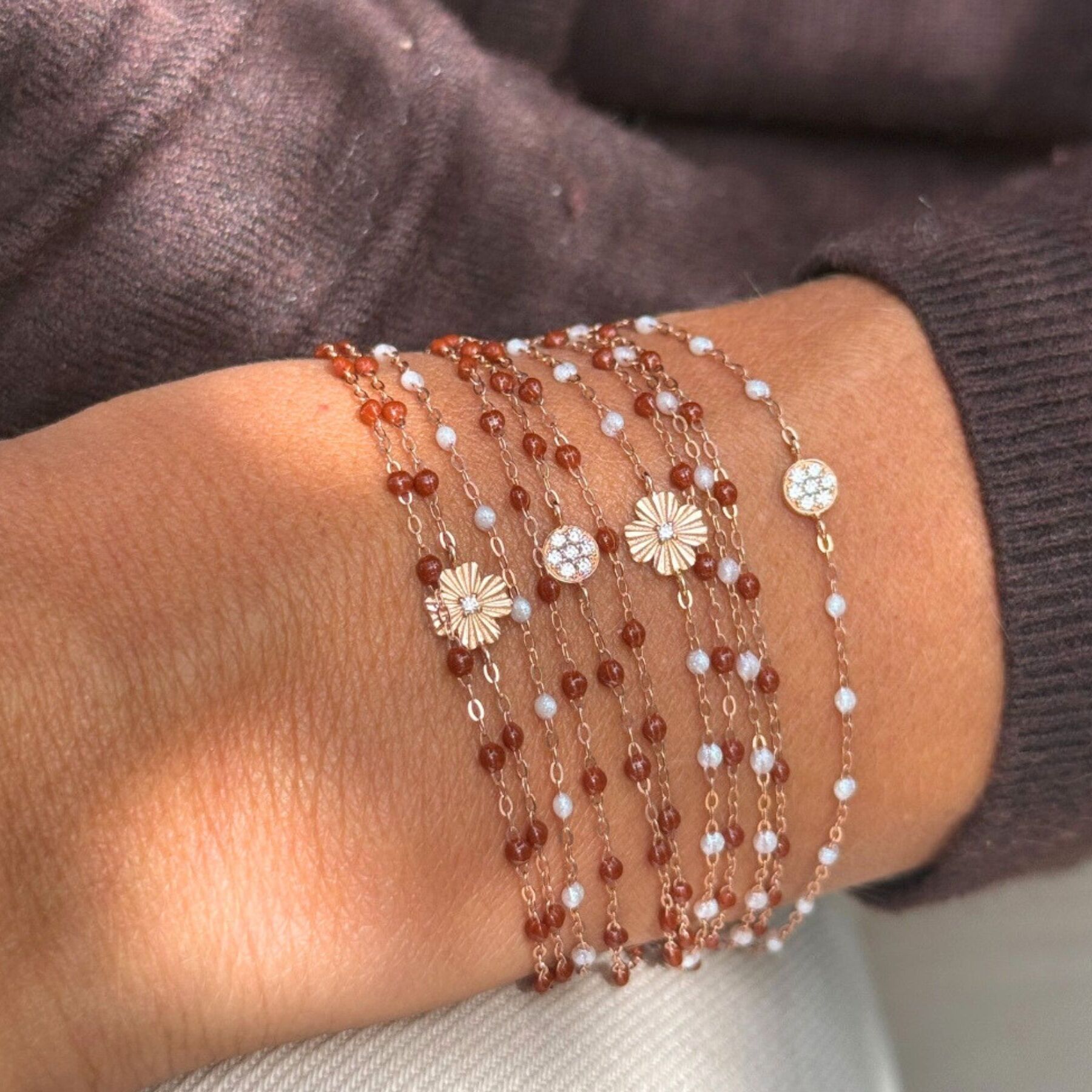 Bracelet Gigi Clozeau Classique en or rose et résine moka, 17 cm