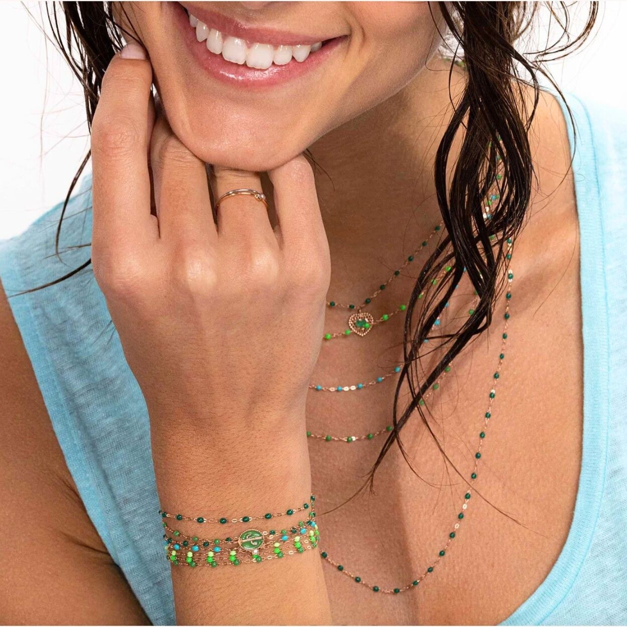 Bracelet Gigi Clozeau Classique en or rose et résine vert prairie, 17cm