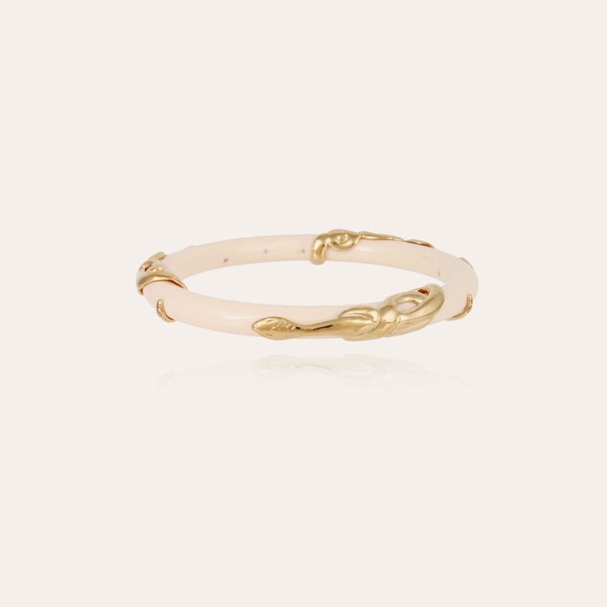 Issu de la collection Cobra du créateur Français Gas Bijoux, ce bracelet jonc en acétate ivoire, délicatement poli à la main, se pare d’un fin serpent doré à l’or fin.