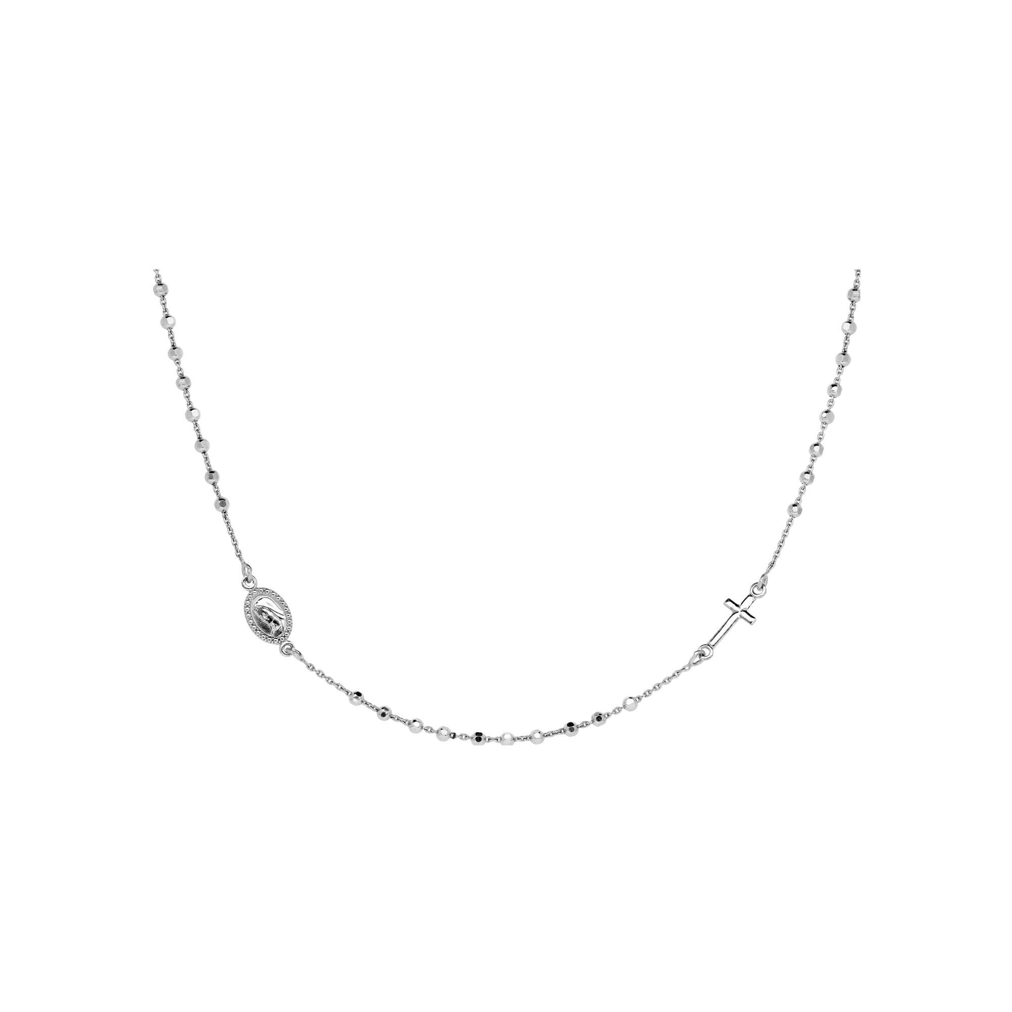 Collier argent rhodié boules croix et médaille religieuse 43,5cm