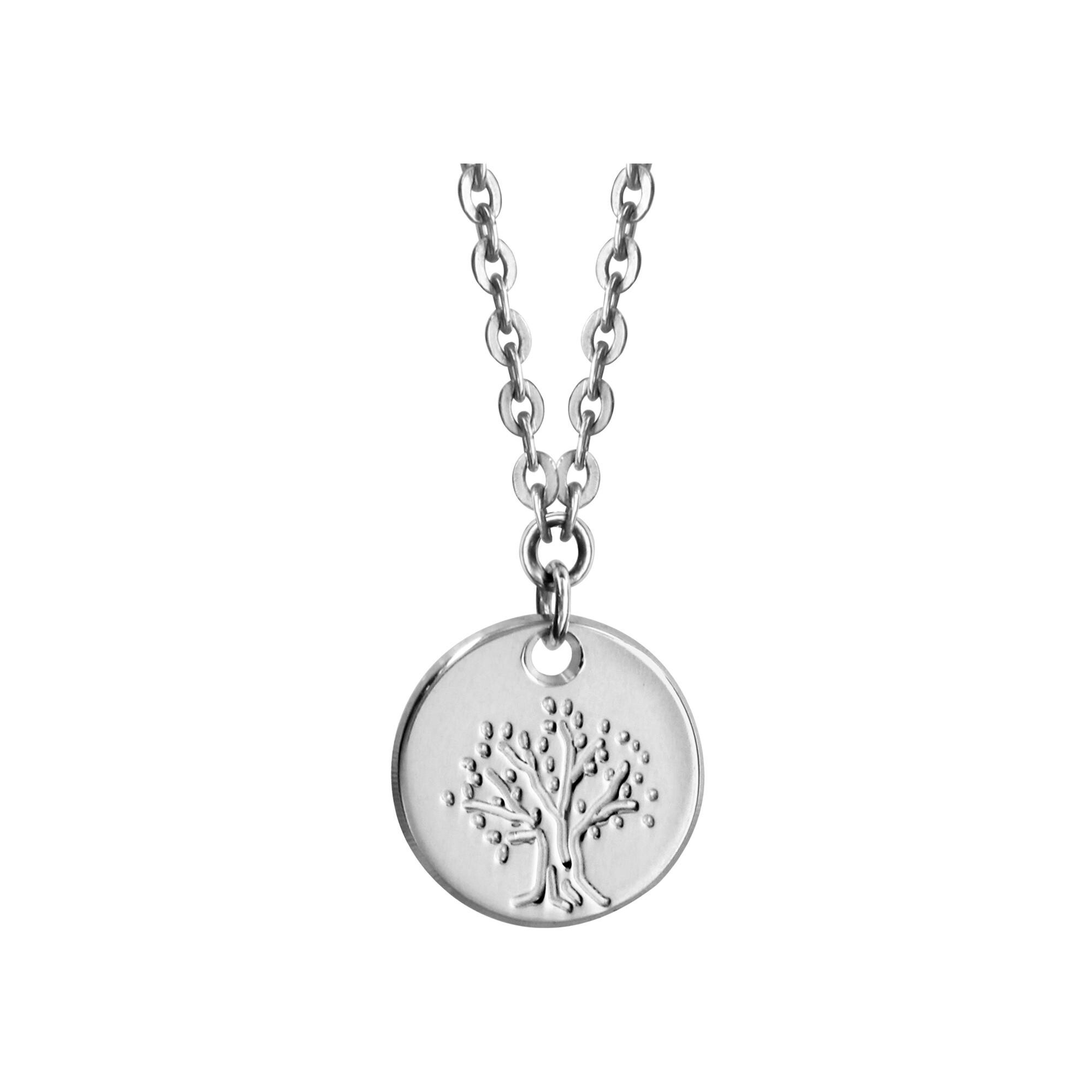 Collier argent rhodié petit galet 11mm arbre de vie 35+5cm