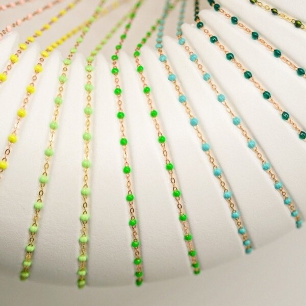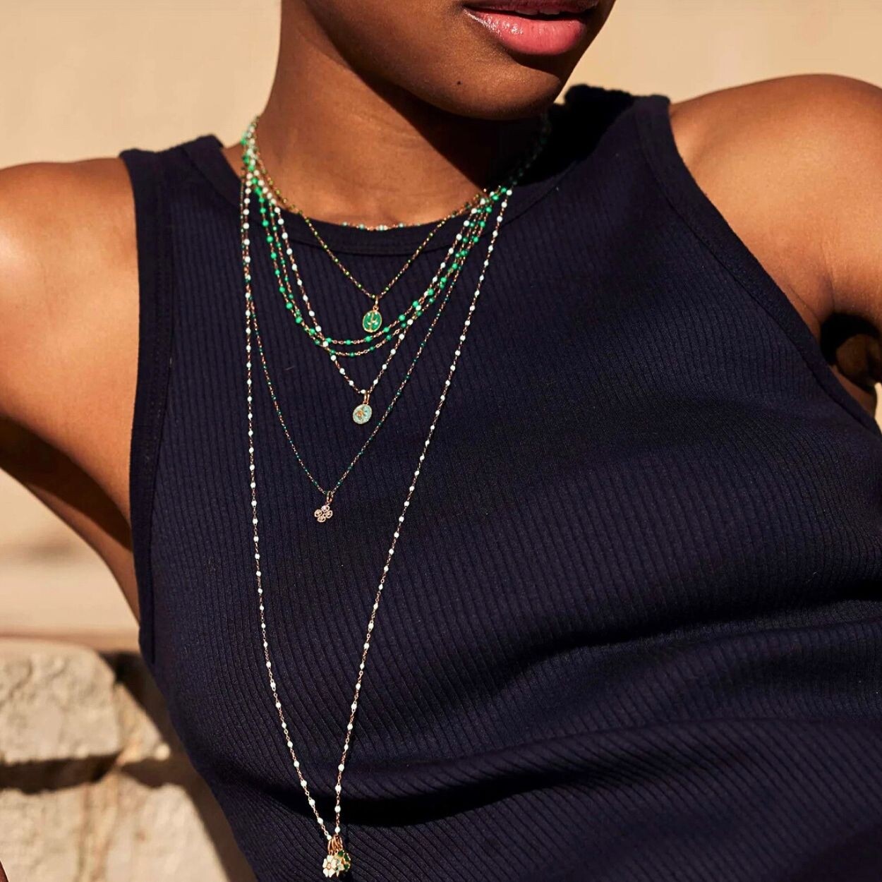 Ce collier gigi CLOZEAU en or rose 18 carats fabriqué en France avec sa couleur émeraude évoque le renouveau. Ajoutez un pendentif : soleil, Madone, cœur, étoile, croix et bien d'autres pour souligner la beauté de votre bijou et le personnaliser à votre image.