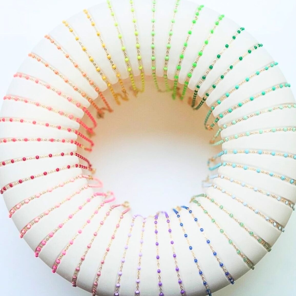 Création Française, ce collier gigi CLOZEAU en or rose 18 carats avec des perles de résine "rose bébé" a été créé et conçu pour être porté avec aisance par tous, un bébé, une jeune fille ou une femme alliant élégance et simplicité.