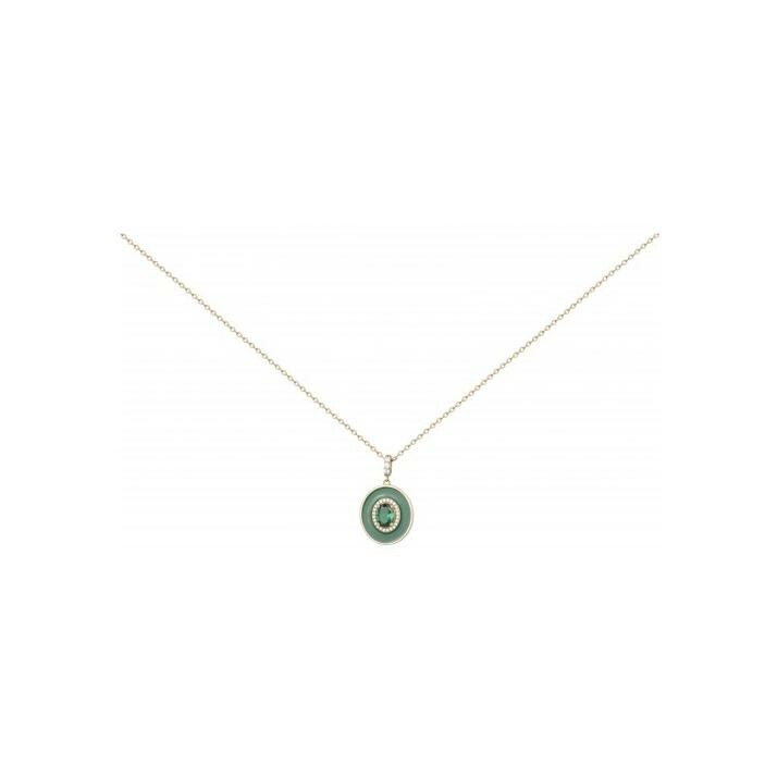 Collier Griffe Rouge en plaqué or, laque verte et oxydes de zirconium