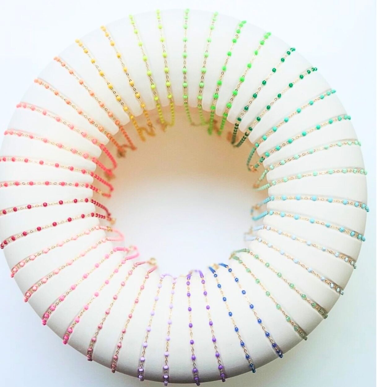 Ce bijou élégant peut être porté sur les colliers en perles de résine du créateur, qui donne une touche rock, tout en conservant une dimension de spiritualité.