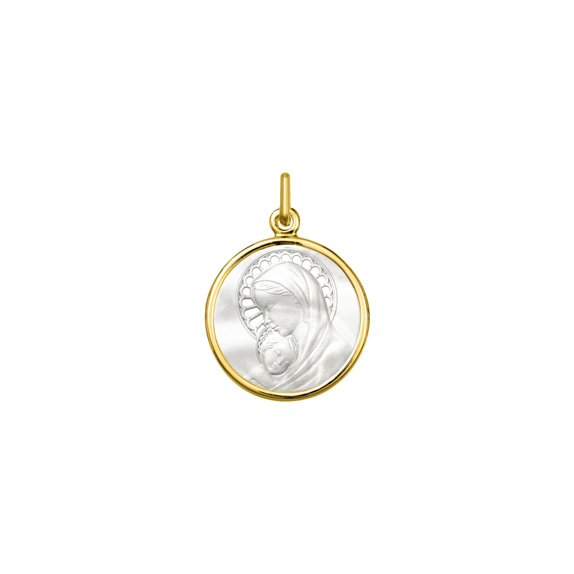 Médaille Vierge en or jaune et nacre