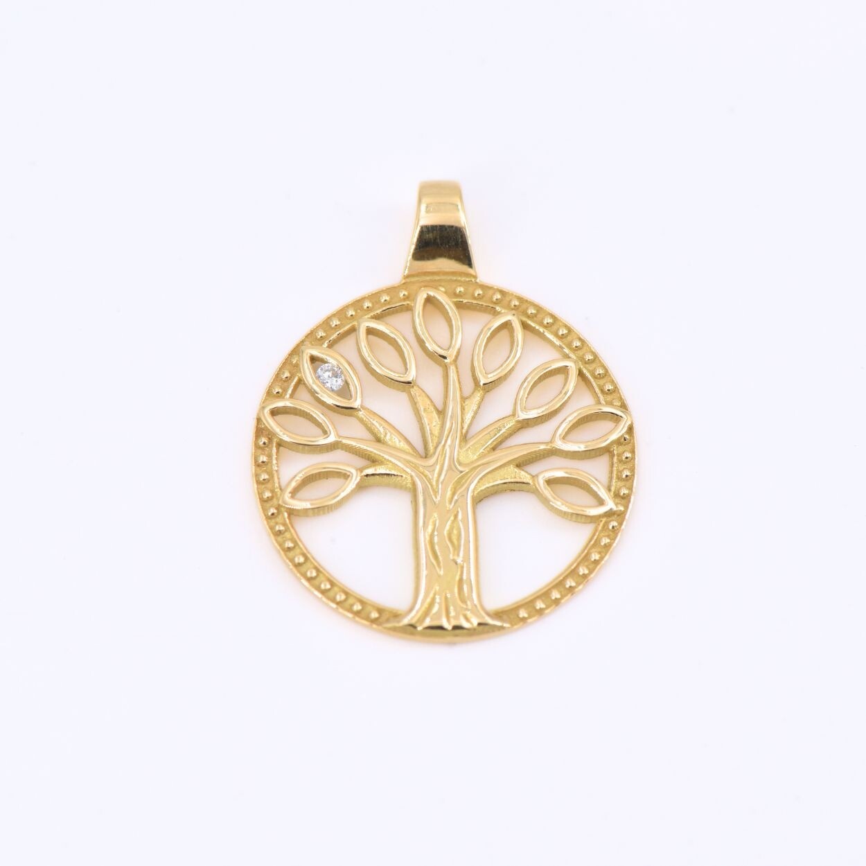 Ce bijou délicatement serti d' un diamant représente un arbre de vie éclatant ! L’Arbre de vie c’est le symbole de la famille, la force de la vie et la protection.