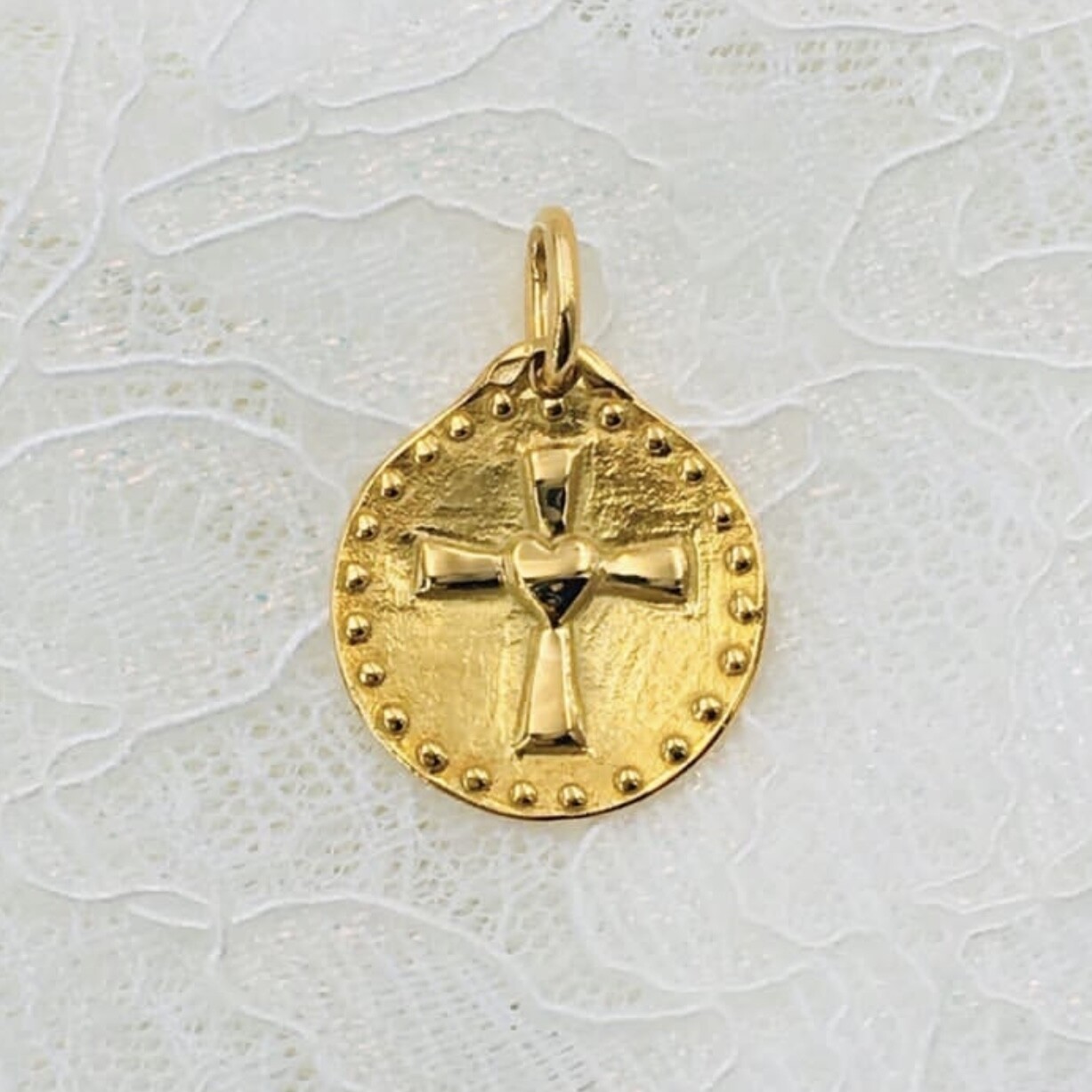 Craquez pour cette médaille Croix de la charité, en or jaune 18 carats, fabriquée en France, par le créateur Mely qui est un magifique symbole d'amour et de compassion!