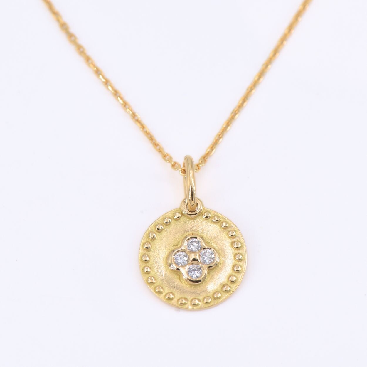 Craquez pour notre pendentif quadrilobe, fabriqué en France par le créateur Mely, serti de diamants, il rayonne grâce à son éclat et sa joie de vivre !