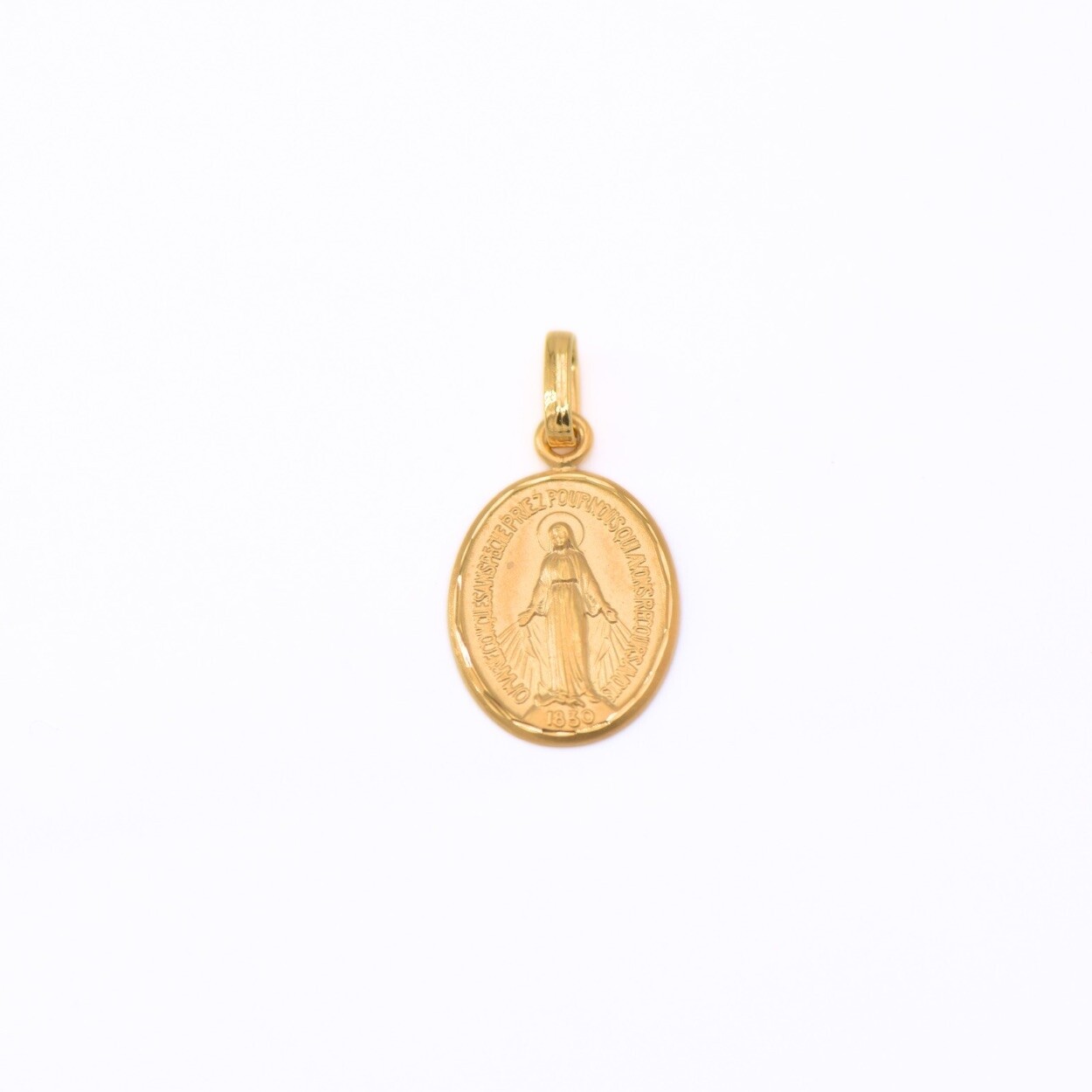 Un intemporel de foi, d’amour et de protection, cette médaille Miraculeuse en or jaune 18 carats est de forme ovale, elle mesure 13 mm en hauteur, 10 mm de largeur et pèse 1g09.